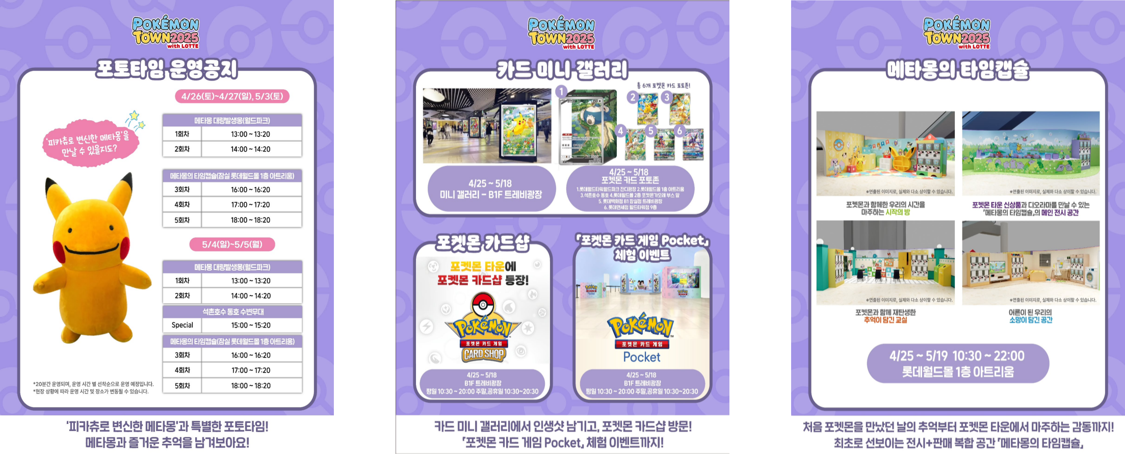 카드 미니 갤러리와 B1F 트래비 광장, 롯데월드물 1층 아트리움에서 진행하는 포토타임과 이벤트는 모두 오전 10시 30분 부터