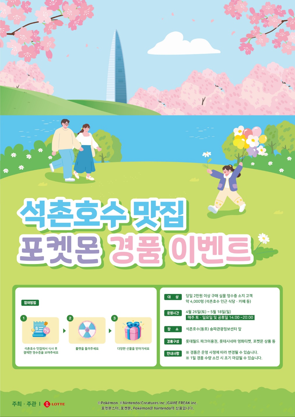 - 증정상품: 롯데월드 이용권, 롯데시네마 티켓, 햄버거세트 교환권, 커피교환권, 포켓몬 풍선 머리띠등